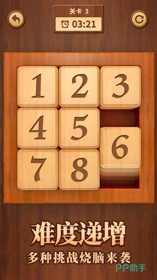 玩家只需轻触屏幕,指挥相邻的数字方块互换位置,直至所有阿拉伯数字井然有序地排列,便可解锁通往下一关卡的大门。游戏内精心设计了八种各具特色的华容道模式,从初学者的3X3基础布局,到高手的挑战模式,每一种都能让你逐步掌握游戏的深层规律。无论是数字排列的策略思考,还是方块移动的精准操作,都将考验你的智慧与耐心,让你在每一次的挑战中收获成就与乐趣。