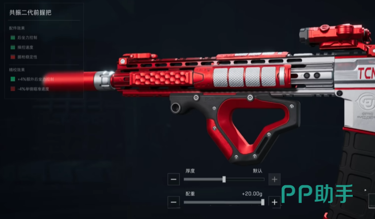 共振二代前握把,精校配种加满。45发弹匣搭配款快拔套。后握把采用幻影,精校配重厚度都加满。枪托采用416轻型枪托,配重和安装位置都向右拖满。增高架加上一倍镜,护木片则倾向于带腰射的护木片,给的属性多。