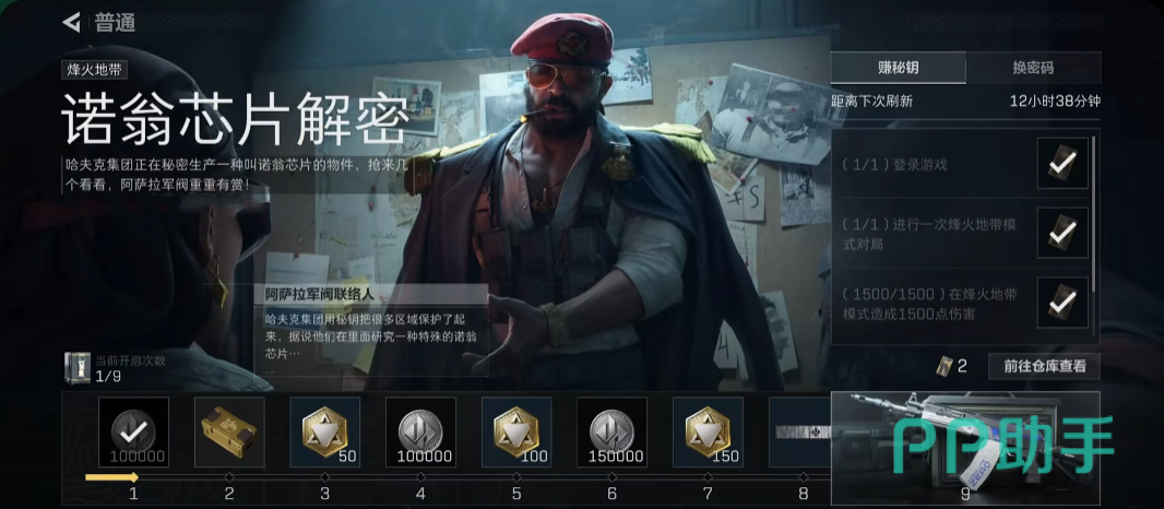 第一步就是跟着活动的要求将特定任务都完成,完成后就可以拿到重要的“密匙”道具,在仓库中找到后,保险起见放在安全箱里面。然后返回到活动页面里面,找到“换密码”的选项,接下来就选定“获取更多芯片”,然后系统就会告知我那家地图上面保险箱的具体位置。