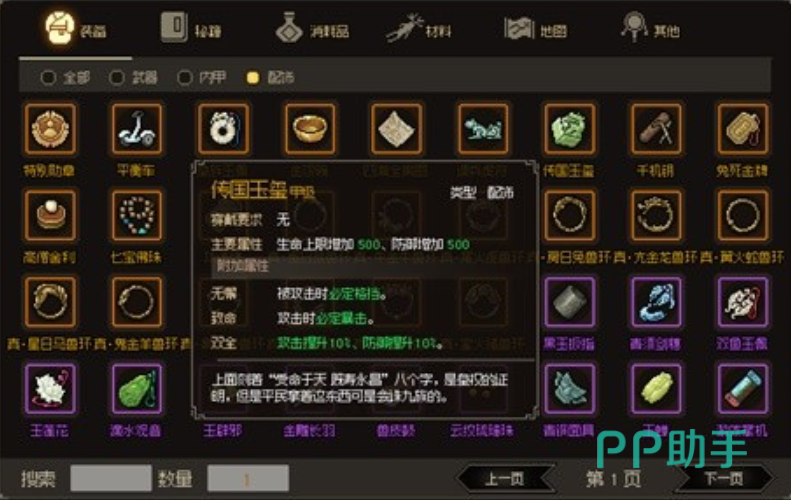 首先要介绍的是玉玺,这不仅是完成皇帝线任务的关键道具,携带它还能让我们手下角色的攻击必定暴击,从而每次出手都能打出高额的伤害,此外玉玺还能提升格挡率和攻防加成,这意味着玩家不仅能拥有高额的输出,防御上也不容小觑。
