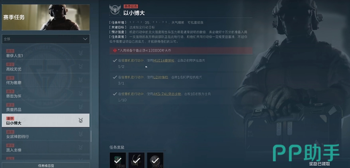 赛季任务总体的难度并不高,完成后所能给到玩家们的回报也很不错,诸位在进行对局时记得去做一做。好了,上面就是三角洲行动全新任务玩法攻略的内容,希望它们能帮到诸位玩家。