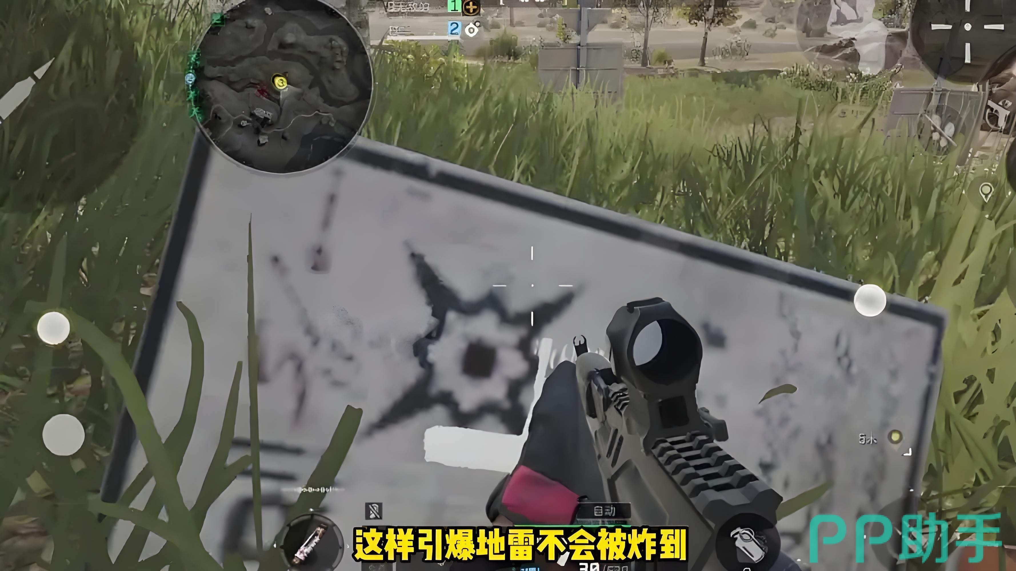 第三个密码在河边的位置,大家需要小心在河边位置有雷区,我们在寻找密码的时候一定要注意不要踩雷,在来到雷区后只要找到警示牌就可以找到第三个密码,由于这个密码的四周都是雷区,大家想要获取这个密码就势必要踩雷,如果不想被炸死的话,踩完后钢构躲到指示牌后面。