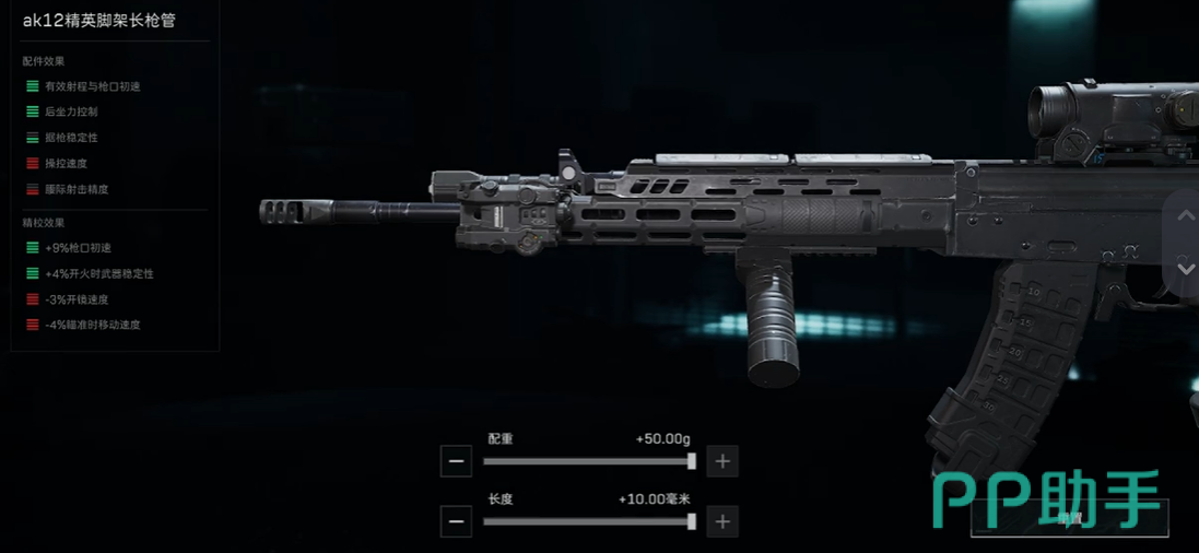AK12的后坐力较为明显,因此,首要任务就是控制其枪口上扬与抖动。在配件选择上,推荐安装枪口补偿器或海神消焰器,这两者都能有效减少垂直和水平后坐力,让你在持续射击时更加稳健。同时,选择一根精英脚架长枪管可以提升武器的精准度与射程,使你在中远距离作战时更具优势,适应更多战术需求。