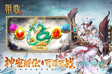 一款以《封神榜》为背景设定的SLG游戏朝歌在这里你可以再度感受到《封神榜》气势磅礴的传奇故事,而且通过每一次的战斗体验,热血和策略相结合的激情打法。游戏满满的国漫风配合着激动人心的背景音效,让玩家在战斗中更加酣畅淋漓,并且他独有的宠物孵化系统,可为玩家打造出独一无二的神宠坐骑,与他们并肩作战,建成开荒,大兴土木。