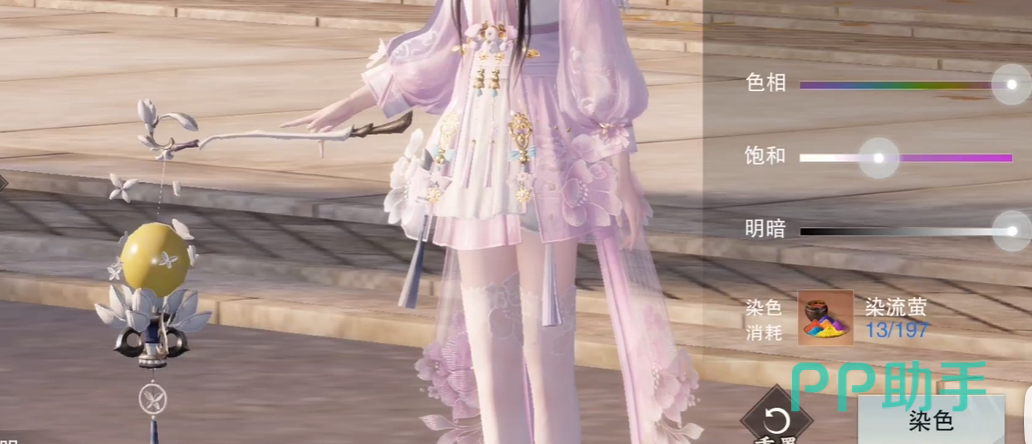 色相是可以随意更改衣服的颜色,如果玩家想要变成可爱的粉色,只需要在滑动色相的区域,就能很快地定位到粉色颜色区域,同理想要换成其他颜色也是这么操作的。