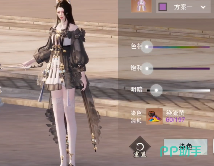 染色系统相对来说还是比较简单,基本上是对于单个服装进行颜色上的更改,有三个指标可以观看,分别是色相,饱和以及明暗。