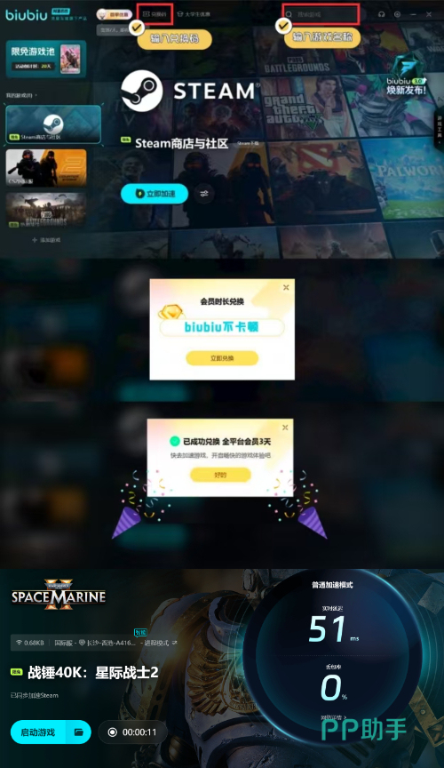 毕竟战锤40k星际战士2是一个占据高内存的桌游,配置最低也要达到GTX1060+8GB,如果大家的设备不被允许,又或者遇到网络环境糟糕的情况时,就会出现一些掉帧的状况,biubiu加速器一般成为玩家们的选择,如果是新用户只要下载登陆就可以领取24小时的加速时长,如果是老用户输入:【biubiu不卡顿】就会有3天的会员,3天会员足以让大家充足的体验战锤40k星际战士2终极版。biubiu加速器现在对战锤40k星际战士2在9月6日到9月20日限免加速。