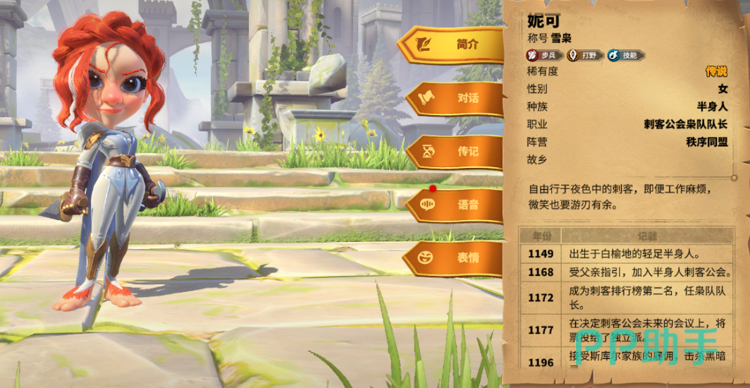 妮可是强大的步兵英雄十分适合打野,她的怒气技能在对敌方造成一次物理伤害后施加淤血效果,该效果能让敌方在接下来的三秒内,生命值下降15%,她的第一个被动能让部队在打野时造成的伤害提升20%,她的第二个被动能让队伍中步兵单位物理攻击力提升12%,行军速度提升5%,她的最后一个被动能让部队造成的英雄伤害提升4%,反击伤害提升10%,她的觉醒技可以让手下在对兵力低于50%的地方,发动普通攻击时有50%的几率造成一次物理伤害。