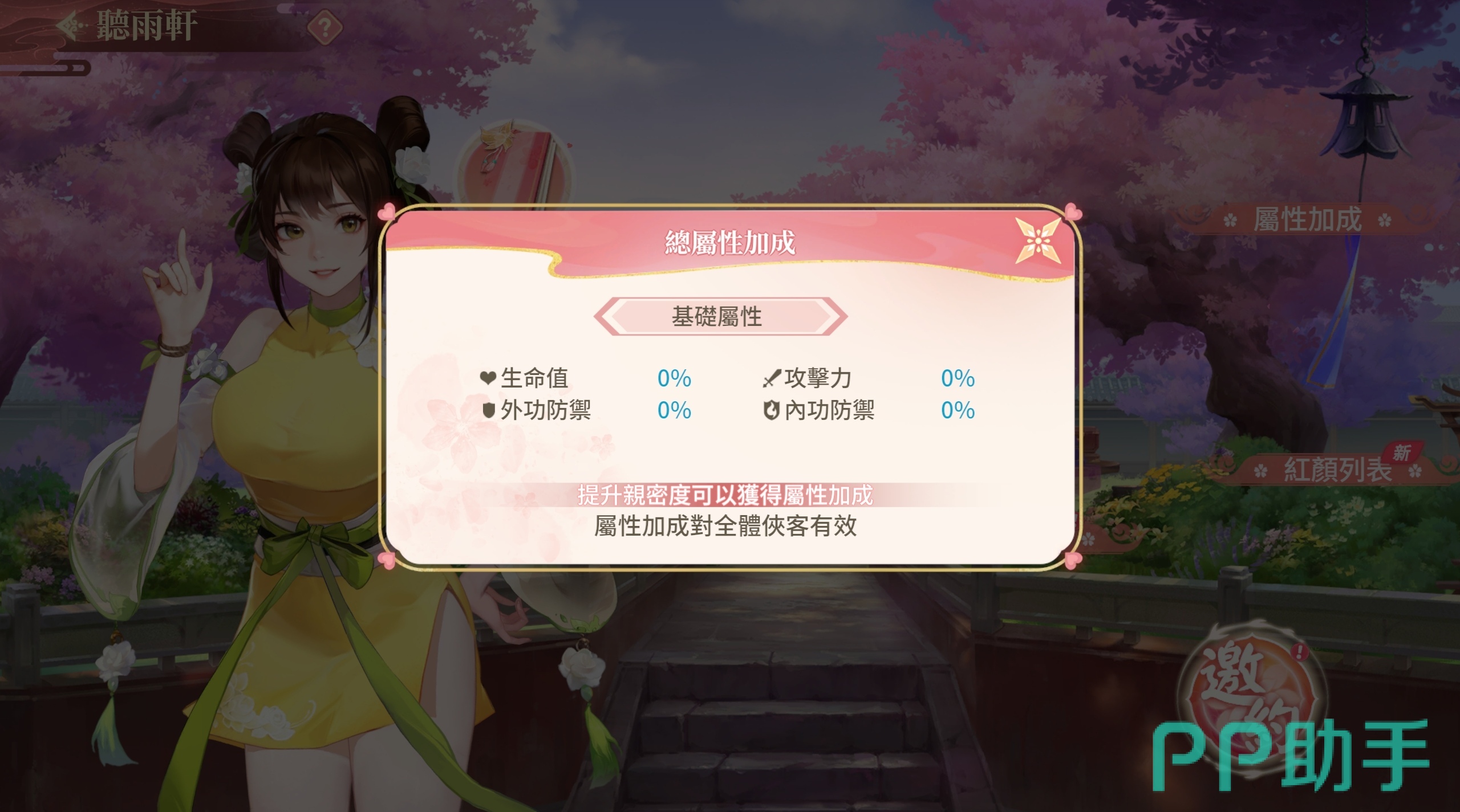在与敌人交手的过程中,如果碰上了难缠的对手,那么就要去提高战力,才有机会将其击败,升高与侠客间的亲密度,可以为阵容带来总属性加成。