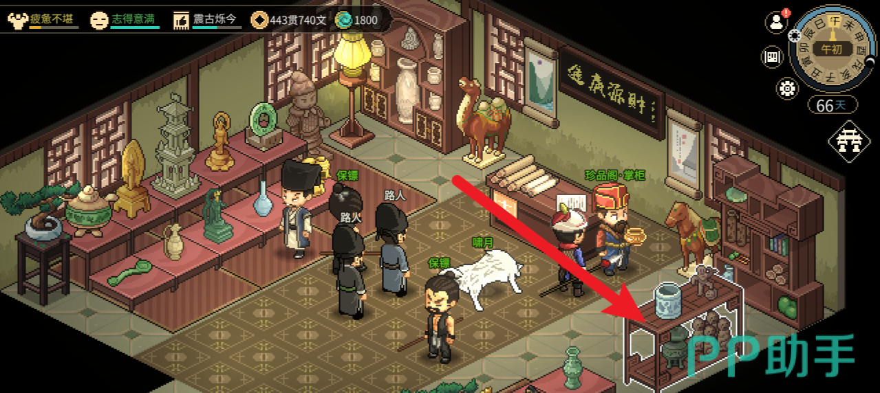 首先我们进入到游戏里面可以找到珍品阁这个地方,点击一下这个地方的系统就会自动寻路带你来到珍品阁的所在地,进入珍品阁后,你需要每天去和老板互动送礼来提高好感度。
