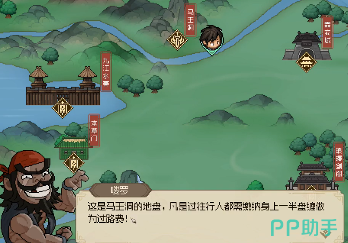 之后我们找到马王洞之后,玩家在靠近洞口时会触发一次战斗。第一次接触时,可能会遇到山贼喽啰的袭击,他们会要求你交出一半的钱财。如果你选择战斗并取得胜利,除了能获得500钱币和心情+10的奖励外,还会继续推进剧情。当然,如果你选择妥协,这群山贼也不会纠缠太久,但接下来你在大地图上移动时,可能会随机遭遇到马王洞的敌人。