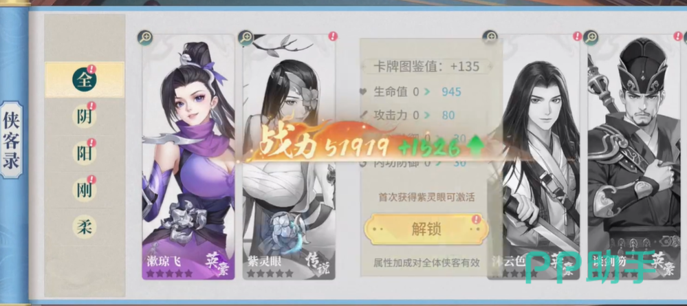 之后就是侠客收集,每个侠客都对应了章节需求,除了那些需要通过抽卡的侠客,其他普通侠客均可以从支线任务中获取,这些侠客组成了前期阵容的强度,每个角色都拥有独特的技能以及属性面板,建议玩家们可以全部收集,完成人生大事的侠客认识篇。