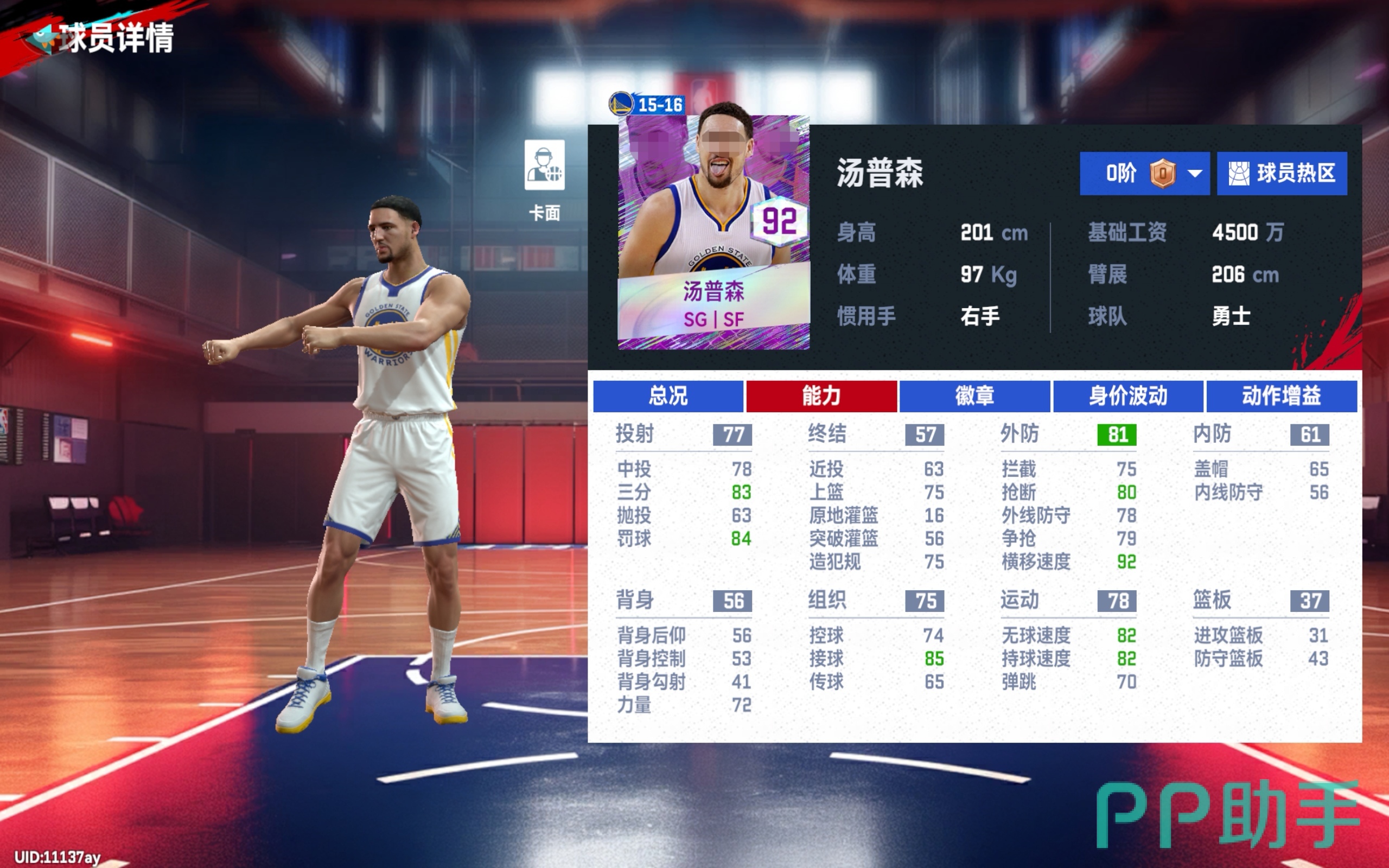 这款游戏的一大优势就是获得了官方授权,所以联盟中所有球队的标识、球衣都能在其中使用,知名的篮球运动员也会出现在这个作品中,汤普森就是其中之一,今天小编为大家带来了美职篮巅峰对决汤普森介绍,汤普森与库里所组成的水花兄弟,展现出了极强的攻击力,为勇士带来了多座冠军,设计人员结合他的的优势去进行创造,让玩家可以拥有更舒适的操控手感。