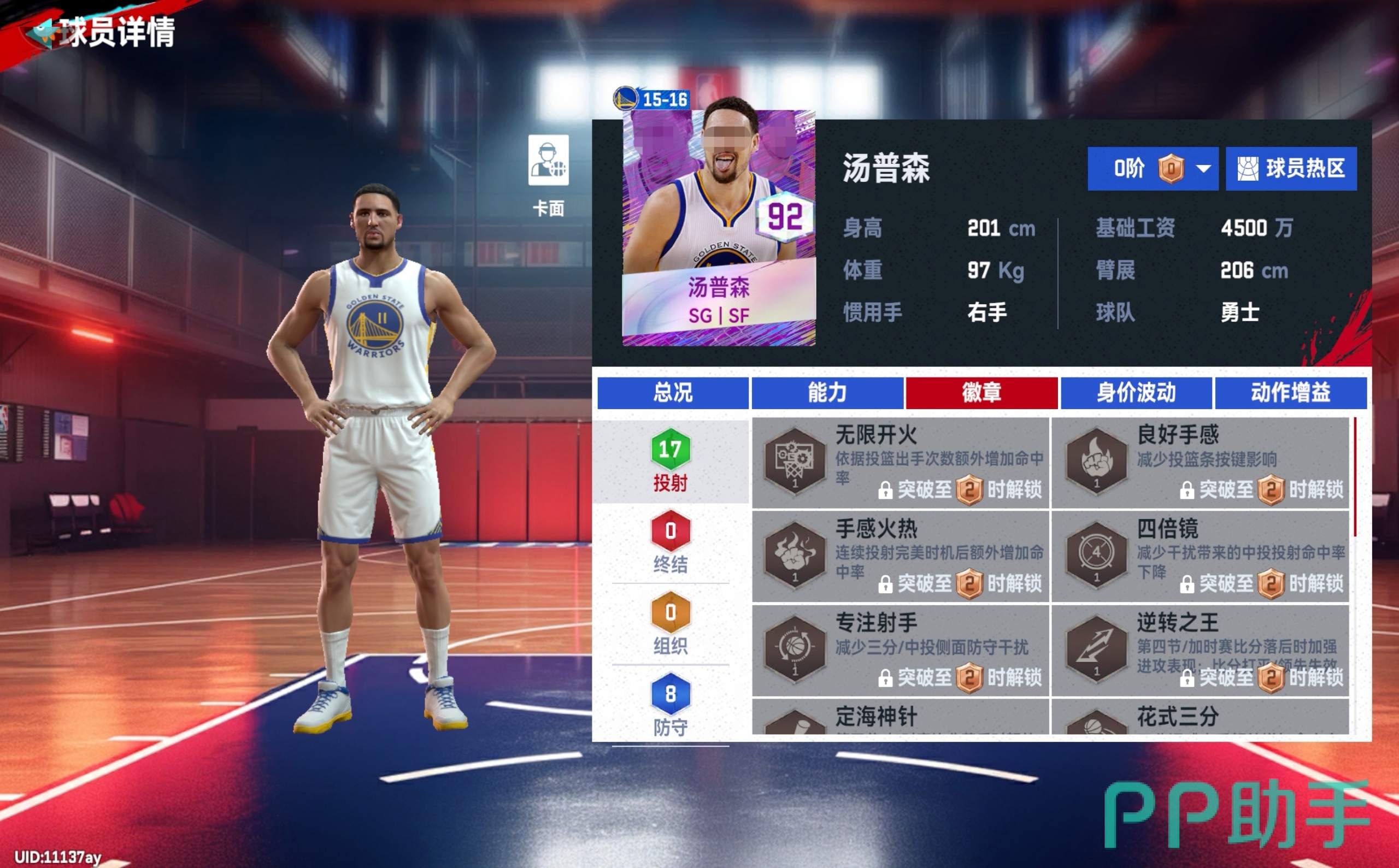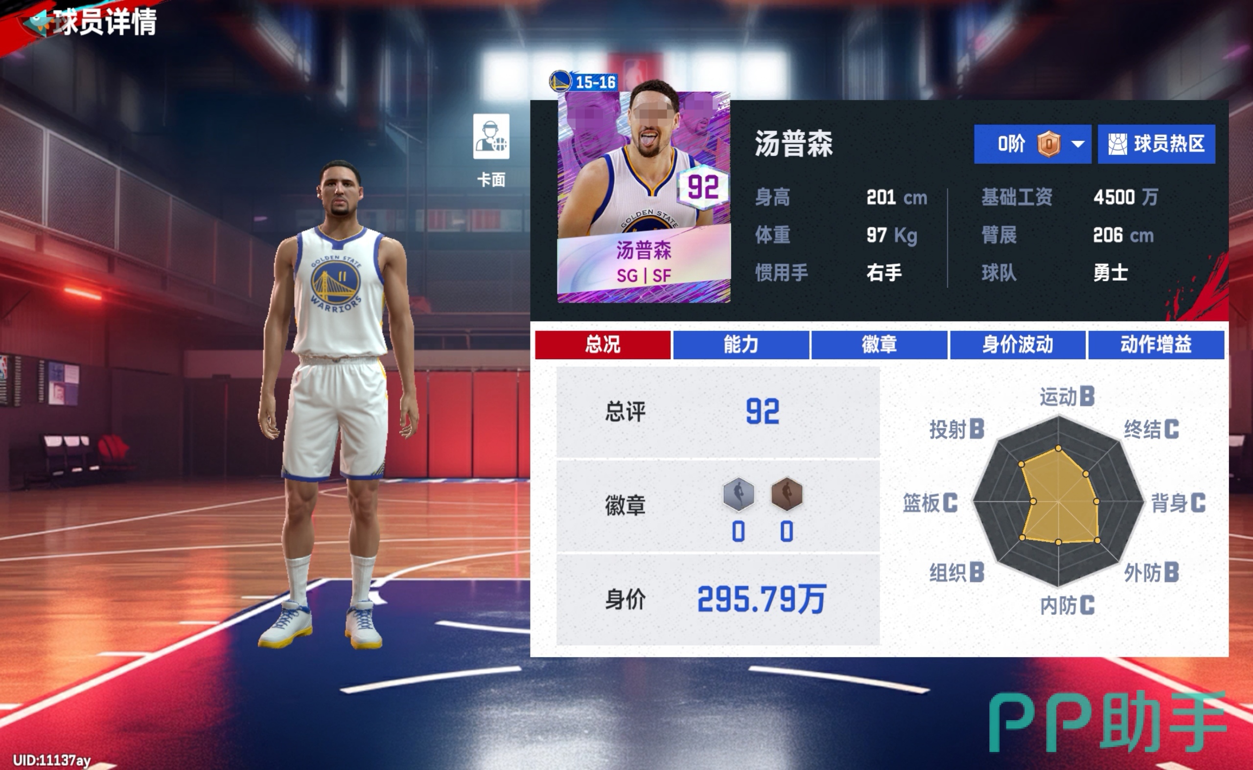 以上就是美职篮巅峰对决汤普森介绍,作为联盟内的知名球星,汤普森自身的实力毋庸置疑,在游戏内也被划分为了最高级别,同时为其设计的众多徽章和动作,让他在对抗中不落下风。