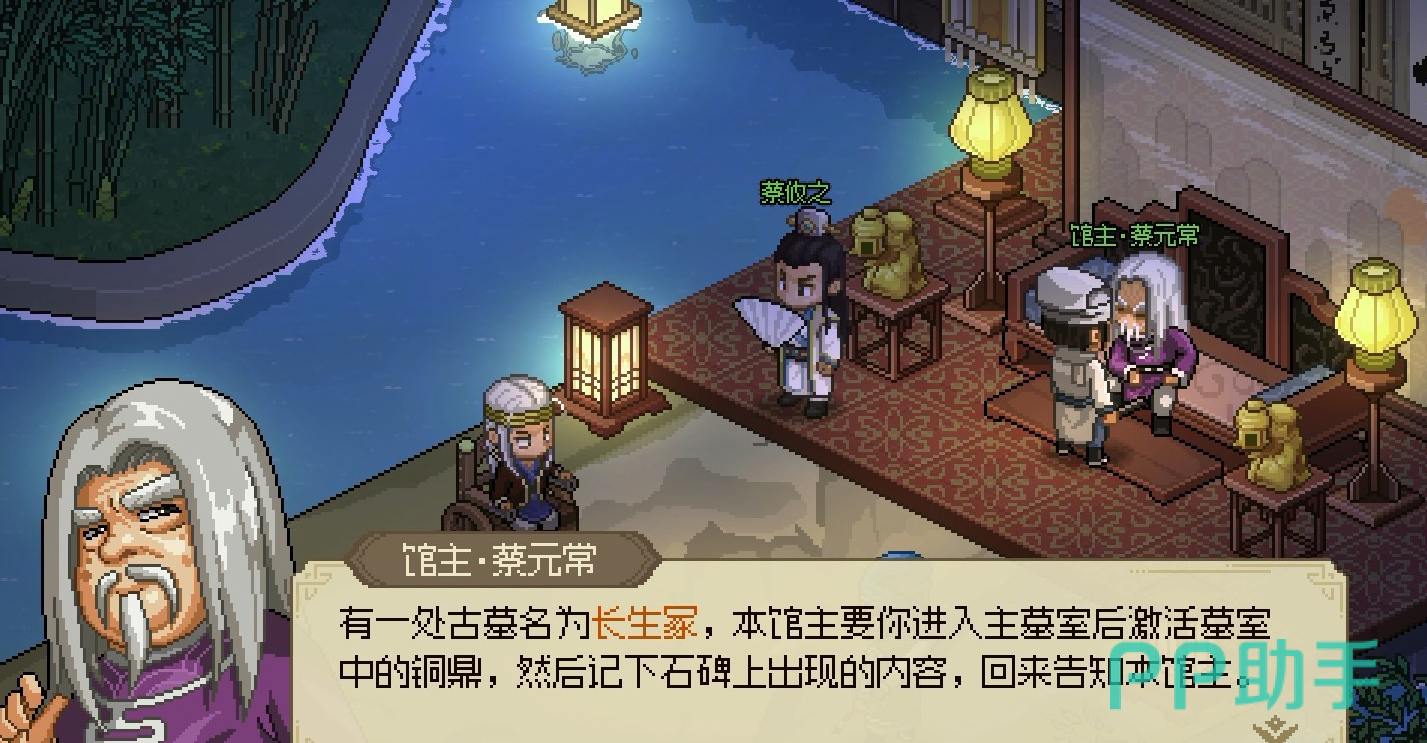 将东西搜刮完后一直直走能看到一个铜门,来到铜门里面需要通过两场战斗,分别是与机器人怪物与白猿的战斗,胜利后来到白猿身后的通鼎,往里放入鲜血接着会与我们自己进行战斗,赝品整体属性没我们自己高可以轻松击败,胜利后旁边的石冢会出现一行字原来馆主蔡无常在寻求自己的不老不死,返回提交任务后选择退门即可不受任何惩罚。