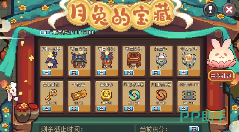 首先这款游戏第一个活动便是寻月宝藏。这个活动是需要玩家们在活动期间去不停的击败魔物,这些魔物会有着一定的概率会掉落中秋积分,这些积分可以兑换限定皮肤,限定家园外观,扭蛋币,火山熔铸石等物品。这些奖励对于玩家们来说都是非常不错的,我们可以根据自身的需求使用积分来进行兑换。