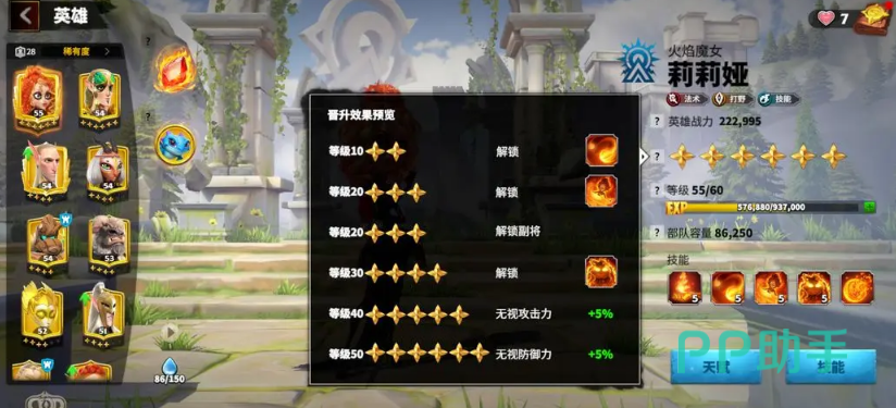 在英雄升到一定的等级后,就可以使用勋章来升星,升星可以解锁新的技能。而给英雄技能升级则要用到信物,升级的是是从已经解锁的技能里随机选1个升级,而非指定技能升级,说到这里可能大家就明白了。