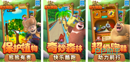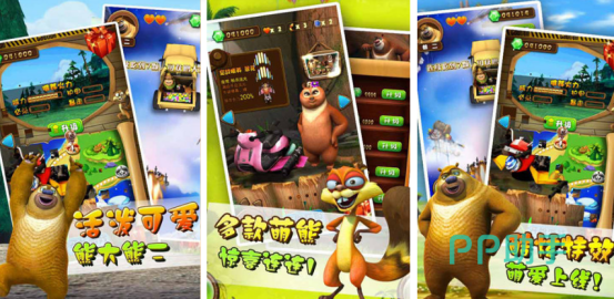 熊出没是几代人都特别喜欢的动画,这款以跑酷为主的熊出没手游,由官方正版授权,由经典形象,以跑酷的方式带着玩家穿越丛林,在丛林当中展开大作战。游戏根据动漫改编而成,高度还原经典人物,比如熊大、熊二、光头强,此外还有其他动物,包括吉吉国王、洞洞幺等等。有很多富有想象力的关卡,让玩家沉迷于熊出没的跑酷世界中。