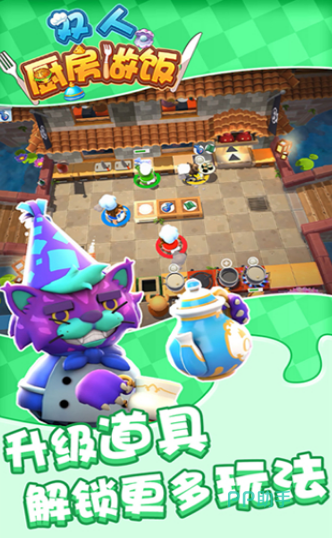 它让两个玩家一起进入到一个温馨的厨房里,共同动手做美味佳肴。每玩到一个新关卡就像接到一个任务,得在规定时间内完成一道菜。游戏开始前玩家们可以自己选难度和挑战模式,就像点菜时选辣度一样简单。游戏的画面特别可爱,就像是看一部色彩缤纷的动画片。游戏也很考验默契度,玩家和玩家的小伙伴配合默契,一个切菜一个炒或者一个调味一个装盘,这样才能又快又好地完成菜品赢得关卡。