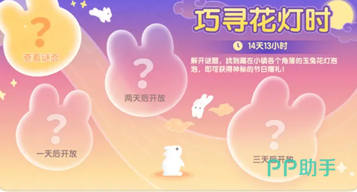首先第一个活动是巧寻花灯时,这个活动主要以猜字谜为主,玩家们需要根据提示来解开开灯花上的谜题,在解开谜题之后便可以得到泡泡的信息。泡泡基本上都是被散布在城镇的角落之中,玩家们找到泡泡之后便可以获取到中秋的限定家具,这些家具只在本次活动中出现,玩家们千万不要错过。