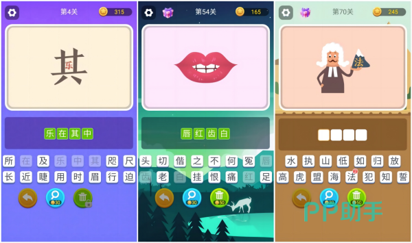 这是一款可以用来消磨闲暇时光、考验中文词汇量的有趣益智游戏,其中蕴含着各式与词语成语有关的关卡等待着诸位挑战。游戏布满思维逻辑的锻炼和脑洞想象力的测试,通过各种有趣的图片结合文化储备猜测出成语或是填补空缺词汇,不仅充满成就感也极具娱乐精神。游戏界面直接简约,操作方式也非常易上手,老人小孩用来打发时间学习成语也是不错的选择。