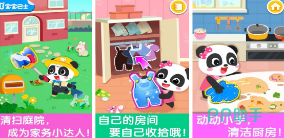 让宝宝学习做家务,不妨采用这款游戏。这是由宝宝巴士专门设计出来的一款游戏,丰富的游戏内容以及好玩的画面,瞬间会让宝宝成为家务小达人。其中有多个场景可以让宝宝自由打扫,比如卧室,客厅,厨房以及庭院等等。游戏操作简单,很适合年龄小的宝宝来操作,全新的游戏玩法会给宝宝带来不一样的体验。