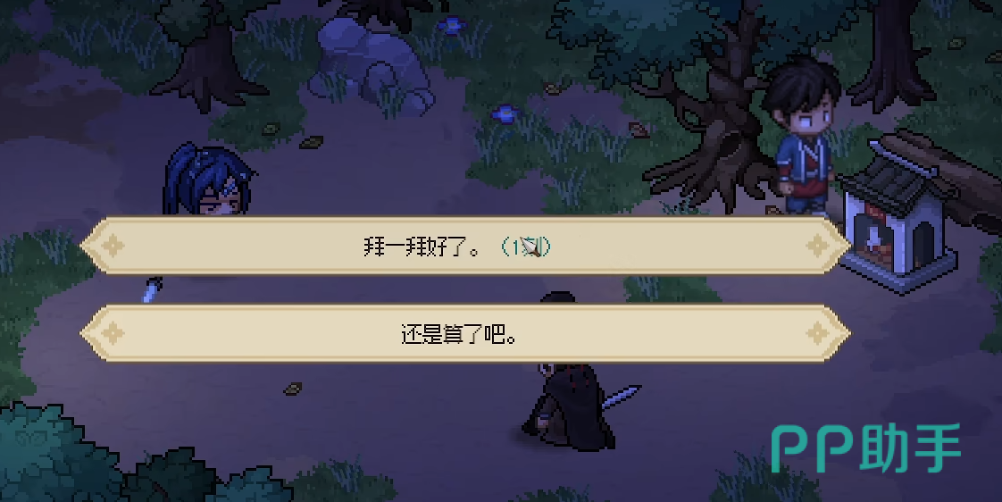 在破庙里面女捕快会让我们从三本秘籍之中选择一本,这里推荐选择回春术,这个在中期之前对于我们的帮助还是很大的。之后玩家们可以去选择休息,在休息完毕后便可以前往迷踪林了。