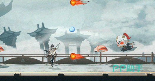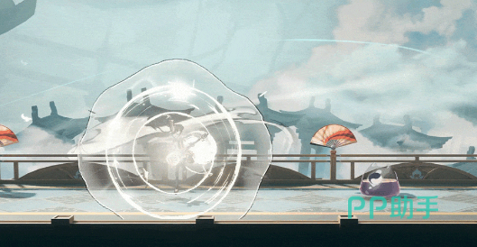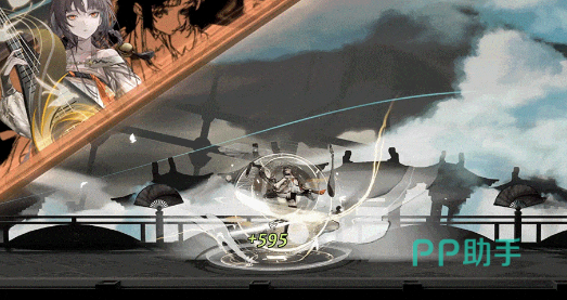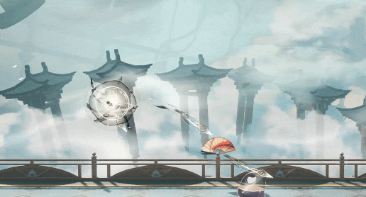 白鹭的冲击技在释放时会怀抱琵琶朝着前方旋转着进行冲刺,到敌人附近时会先脚踢敌人造成一次伤害,再顺势向后方跳跃弹奏琵琶,朝着当前的敌人发射一道音波,造成二次伤害。