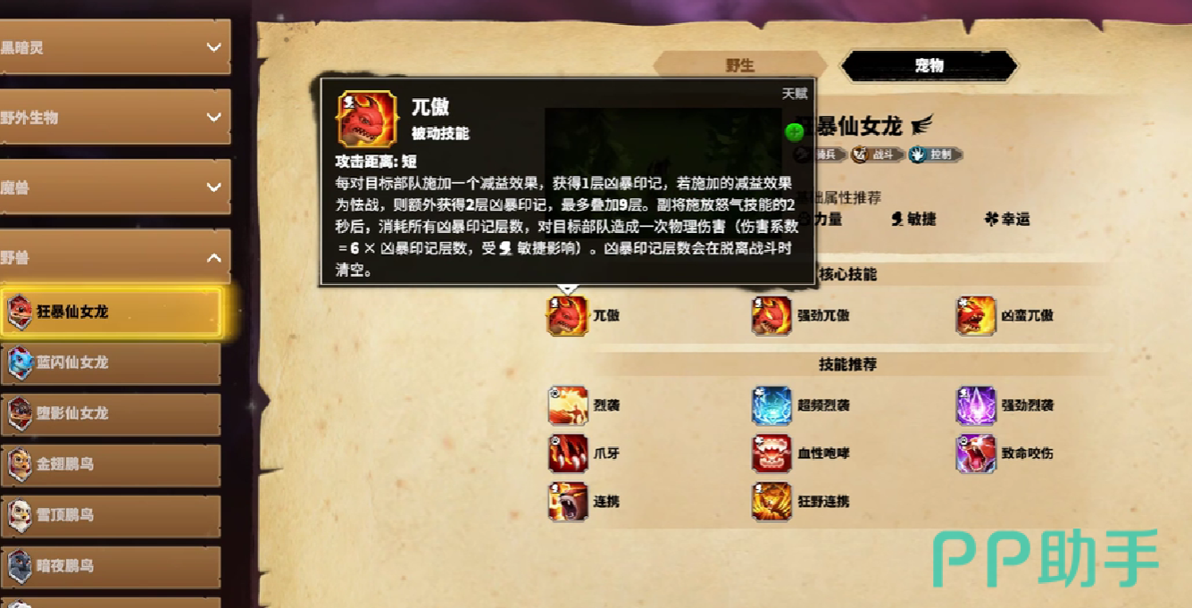 比较适合这个角色的宠物是狂暴仙女龙,于狂暴仙女龙可以对每一个敌方目标部队增加凶残印记,每一层凶残印记能够给敌人叠加怯懦的debuff,法伦笛尔的被动是,能够对身上有着怯懦debuff的角色造成更多的伤害,所以两者搭配相得益彰。