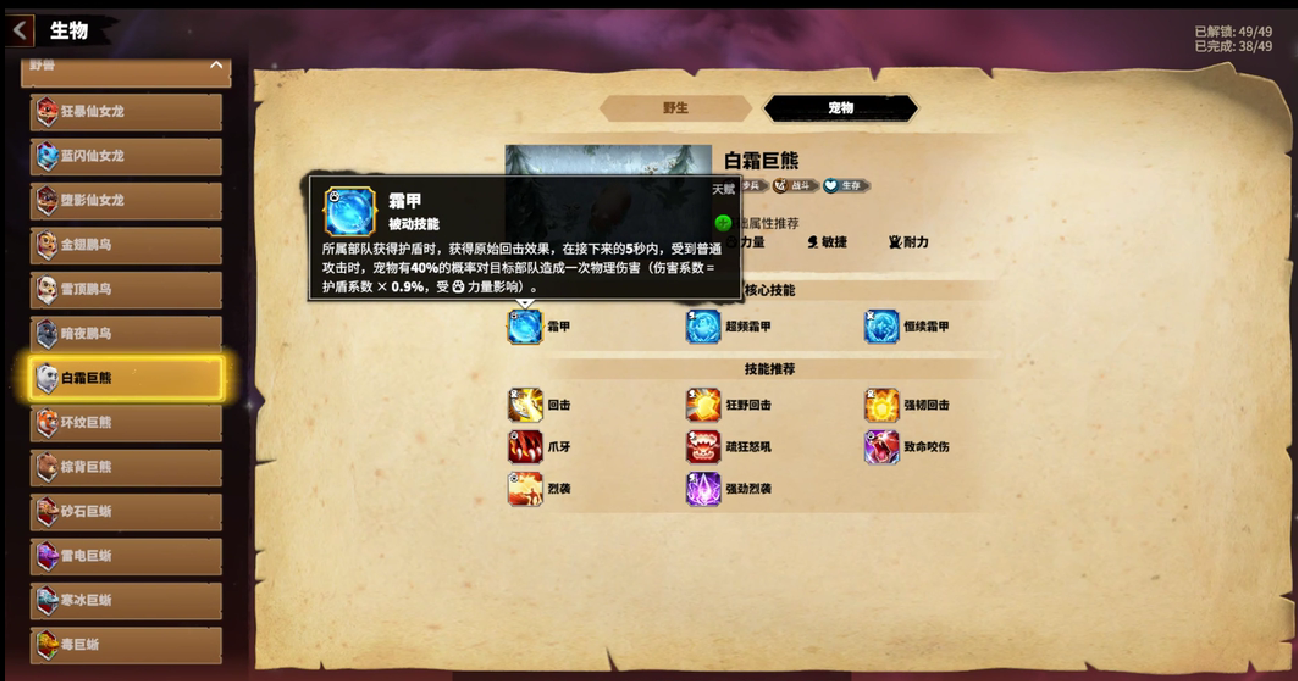 不仅如此,在游戏内宠物也可以通过升级和进阶来获得更高的攻击倍率,玩家需要在大世界探索或者对敌人的领地展开攻势,从而让自己获得更多的升级道具,在宠物的等级达到了顶峰时,会给对应的英雄增加极高的技能转化率,在宠物和英雄的适配上,建议玩家根据兵种的区别来搭配宠物,针对于步兵一类的职业推荐选择巨熊,而针对于魔法师一类的职业,可以挑选仙女龙,弓箭手等英雄则可以选择巨型蜥蜴。