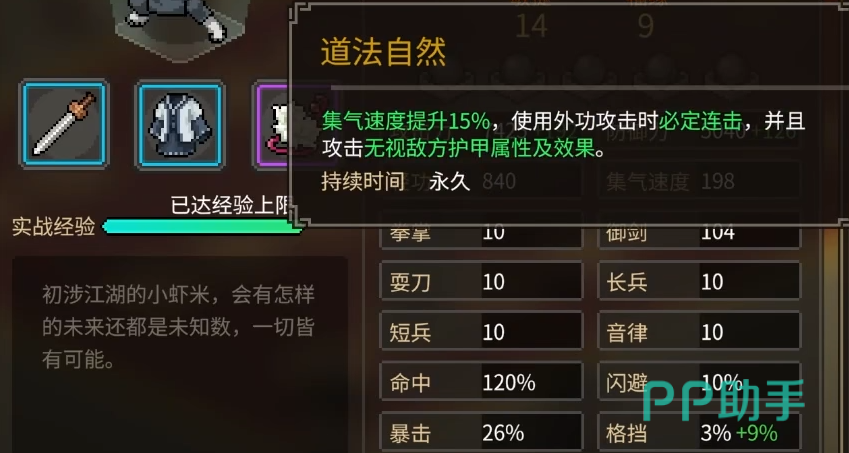 道法自然是一个橙色的特性,这个特性是让我们的集气速度提升15%。在使用外功攻击的时候必定会进行连击,并且攻击的时候会无视敌方的护甲属性以及效果。