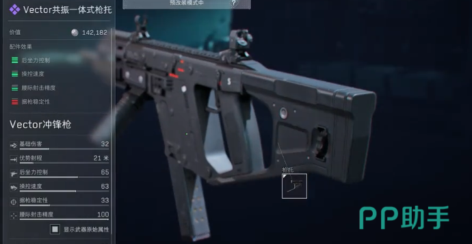 枪口这里的搭配和改动上这里小编非常推荐大家使用海神消焰,因为本身它除那进行消焰之后还能增加冲锋枪的后坐力的压力以及控制。当然专配这个东西玩家就要牺牲掉腰射,但是本身冲锋枪的性能腰射就是很良好的,不需要进行加纸,对比起来也是非常加强的。