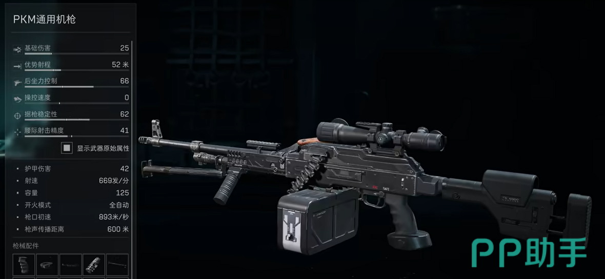 PKM轻机枪是一款火力压制神器,适合那些喜欢强大火力的玩家。这款全自动机枪使用全威力弹药,虽然射速中等,但每一发子弹的威力和穿透力都不容小觑。在小规模的冲突中,PKM可以有效地压制敌人的行动。但需要注意的是,由于它的后坐力较大,玩家需要花些时间练习压枪,才能更好地发挥它的全部威力。