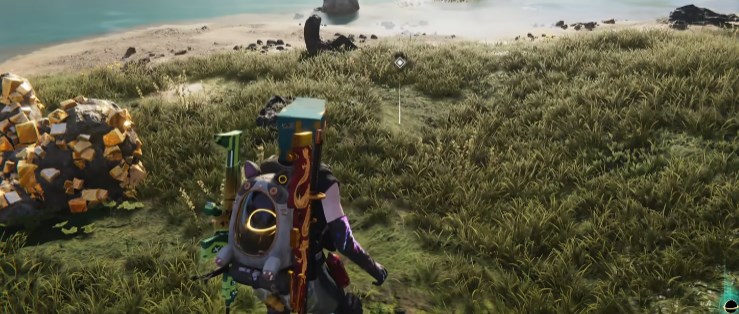 画作坐标(5540,-5976),高岸镇的下方,还是老样子拿藏宝图,去宝箱所在地,坐标(5743,-6818),如图所示是在一处河岸边的湿地上。