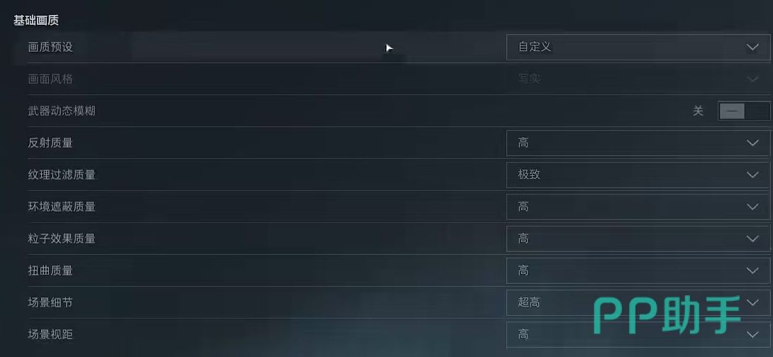 在下方还有一个视角范围,其中默认FOV一定要直接拉满。瞄准镜境内放大这一个设置,小编建议大家关闭,因为目前境内放大可以让大家的帧数直接减半,因为优化方面还有待提升,所以现在大家还是关闭比较科学。画质预设可以直接进行自定义,武器动态模糊效果小编建议大家关闭,因为这会影响大家获取武器的皮肤效果展现。