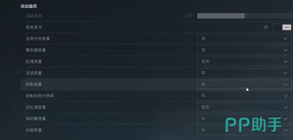 接下来的反射质量纹理,过滤质量环境,遮蔽质量等都要开到高,场景细节开到超高,这样才可以将游戏高画质的优势发挥出来。但是也没有必要选择最高,也会影响流畅度,尤其是场景视距,如果开得特别高,会加载更远处场景,对于提高帧数也是不利的。接下来的高级画质设置方面,着色器质量建议只开到高就可以,纹理质量开到极致,后处理质量开到极致,其他的阴影质量、动画质量等开到中就可以。