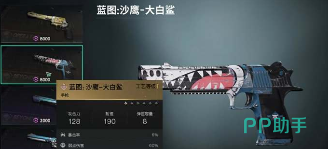 也有快速装填效果,可以更好的保证玩家在战斗时的手感,手套模组建议选择暴击强化,裤子模组选暴击狂热,头套模组选异常大师,面具模组选择单独爆破,这样的选择能让大白鲨的基础爆弹从25%到75%。