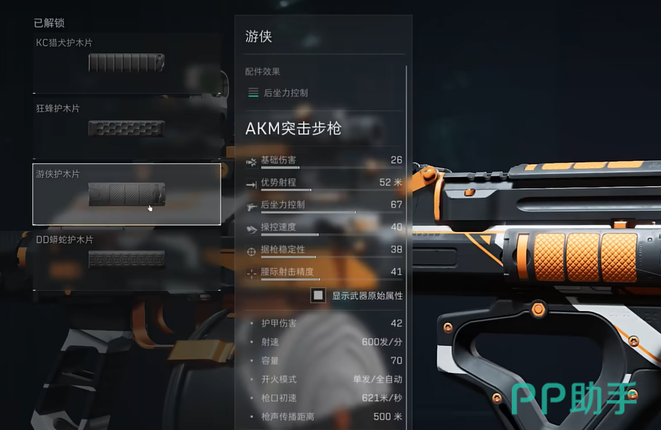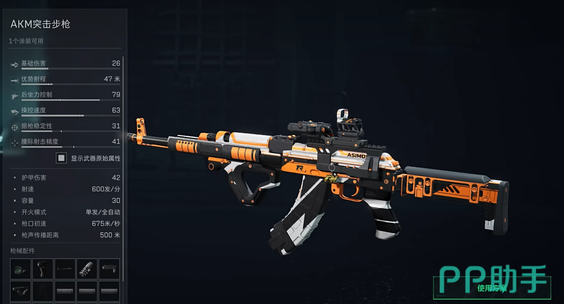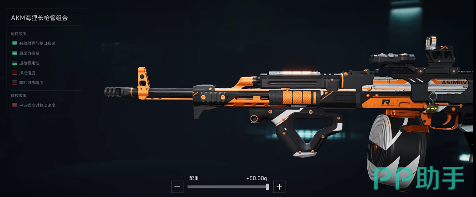 第一套改装方案专为新手玩家设计,主要目标是提升AKM的操控性,减少其后坐力,让玩家在战斗中能够更稳定地进行射击。这种改装非常适合快节奏的战斗,尤其是在面对多个敌人时依然能保持精准度。导轨推荐使用紫色镭指+3猎犬护木片,这有助于提高准度,尤其在移动射击时能有效稳定枪口。