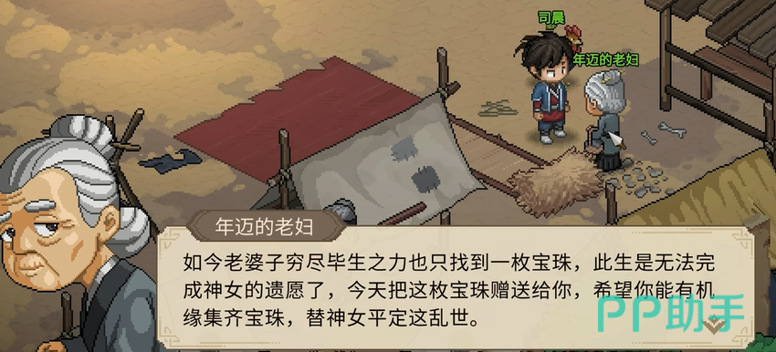 在与老奶奶对话后,她会向你透露神女庙和五行宝珠的故事。然而,这并不是她轻易交出土灵珠的时刻。玩家需要与老奶奶进行战斗,才能将这颗宝珠拿到。等你打败老奶奶后,她会慷慨地将土灵珠送给你,这也意味着你距离开启神女庙宝藏又近了一步。