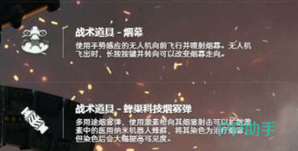 蜂医的两个技能都围绕烟雾弹开。玩家可以使用手势感应操控已有的无人机装备,从而将烟幕进行释放,该烟雾会对敌人造成一定的视觉困扰,所以玩家的整个团队的作战干员可以趁此进行撤退。在长按按键功能下,玩家还可以改变烟雾的走向,相当于一边撤退一边使用烟雾。对于第二个作战道具,玩家可以使用更高级的蜂巢科技烟雾弹,必要时候还可以与前期提到的激素枪进行配合,释放出带有治疗效果的烟雾造福给自己的队友。