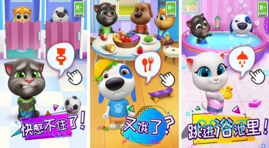 此款游戏凭借着可爱的汤姆猫形象以及精彩的画面,给玩家带来了无限的乐趣,这里还拥有了很多休闲的小游戏,等待玩家体验,比如可以和汤姆猫一起唱歌旅游等等。此游戏将丰富的休闲游戏玩法完美结合,你可以从不同的汤姆猫当中选择一款自己很喜欢的角色,跟随此角色走入到不同的场景中,比如当汤姆猫饿了玩家则需要制作出美食,满足汤姆猫的需求。