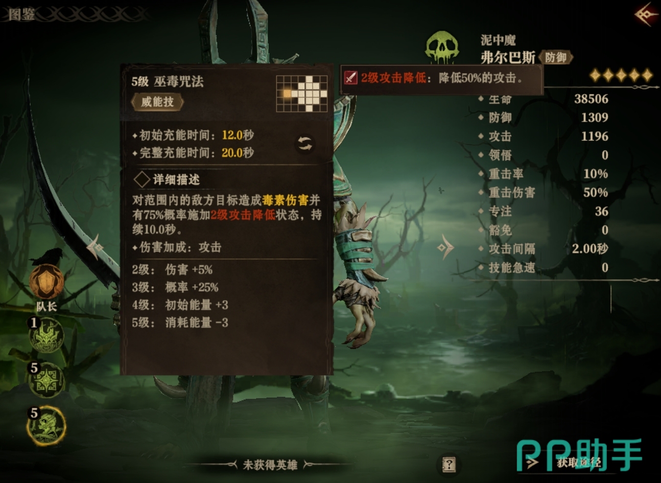 以上就是龙息神寂泥中魔好用吗的攻略内容。泥中魔是毒系队中不错的前排选择,也是组建全毒队时必须要放上阵的防御英雄,而且他的技能泛用性也很不错,所以很值得将他的练度拉起来。