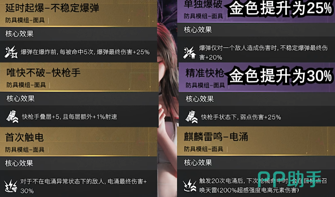 以上就是七日世界防具模组效果一览的全部内容了,给大家列出了所有防具部位可以携带的模组及其效果,大多是橙色模组的数值效果,少数只刷到了紫色版本的有标注,大家可以通过搭配组合来提升某一种方式的输出,创造出属于自己的打法。
