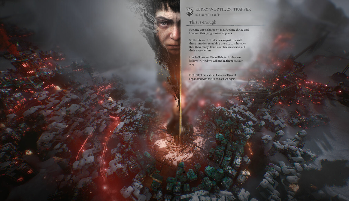 当然标志性的道德困境是玩家无法回避的挑战。在极端环境下,为了城市的生存与发展,玩家可能不得不做出一些艰难的决定。是否牺牲小部分人的利益以换取整体的生存机会?如何处理不同派系之间的冲突与矛盾?这些人性方面的问题是上一代冰汽时代最大的特色,也可以说是最大的败笔。那么新作在道德选择带来的故事性上面能否有着足够的提升?我们拭目以待。