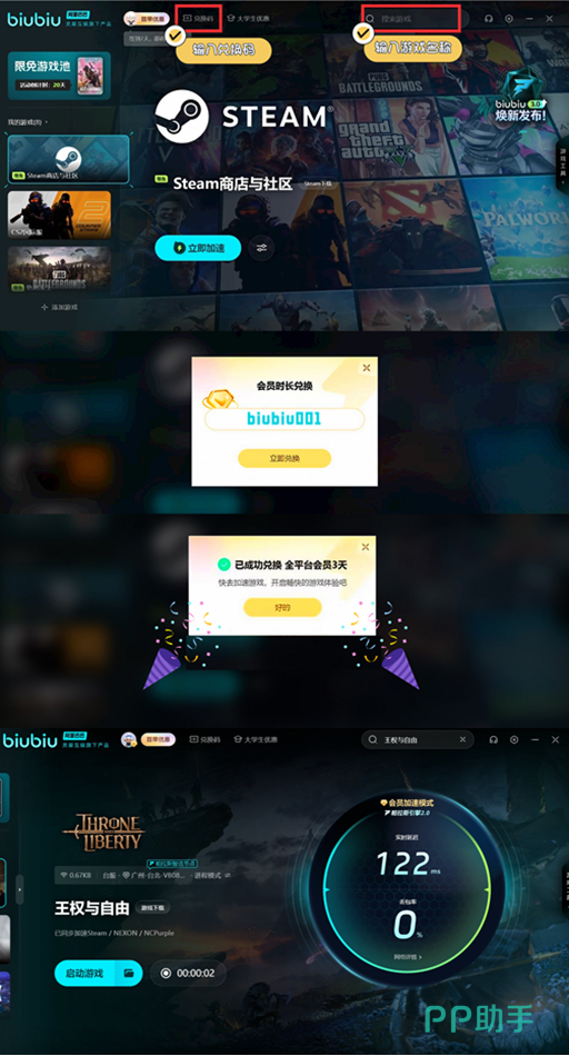 在玩王权与自由时除了需要搭配好装备,网络也得要保障,可以下载biubiu加速器来优化网络,降低延迟,它还能加速游戏下载,稳定下载时的网络环境。并且biubiu加速器支持新用户免费加速24小时,用兑换码【biubiu001】可再激活额外72小时加速时间,两个加一起等于共计免费加速了96小时!