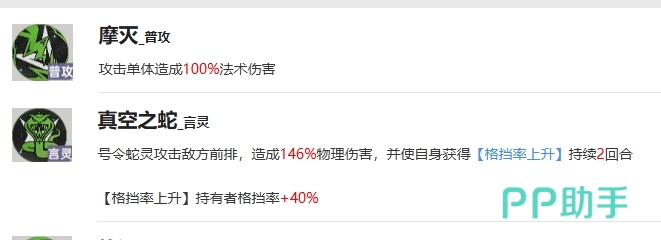 曼因的言灵技能可以号令蛇灵攻击敌方前排,造成146%的物理伤害,这种强大的物理伤害不仅能够直接打击敌人的生命值,还能够对其造成额外的伤害效果,此外这个技能还会使自身获得格挡率上升的增益效果,持续2回合的格挡率上升持有者的格挡率会增加40%,这使得曼因在面对敌人的攻击时能够更好地保护自己和队友。