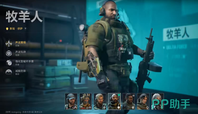 牧羊人只是一个代号,这名干员的全名叫“泰瑞·缪萨”,又因为肤色较深而被玩家亲切的称为老黑。牧羊人在战场的最佳定位是防御人员,同时由于其进攻上也非常强势,所以被称为战场多面手;不仅对于枪械有很强的掌控力,还擅长使用火箭筒打击敌人的载具。