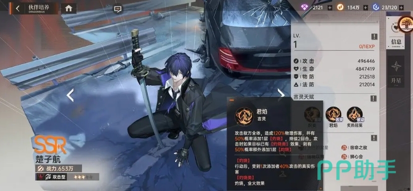 楚子航的基础属性也是相当出色,他的攻击力和暴击率都达到了比较高的水平,普攻虽然看似简单,但能够攻击随机单体目标,造成100%的物理伤害,更为关键的是,每次攻击命中后,都有30%的概率为目标添加一层灼烧的效果,这种效果会在目标行动后,使其受到相当于楚子航40%攻击力的真实伤害,持续2回合的时间。