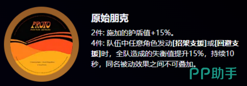 原始朋克的两件套效果是增加施加护盾的数值15%。这意味着,角色的护盾能力会得到显著提升,特别是在面对需要高防御的敌人时,这一额外的护盾可以有效提高生存空间,减少玩家的压力。对于那些需要在战场上承受大量伤害的角色而言,增加的护盾是极大的助力。