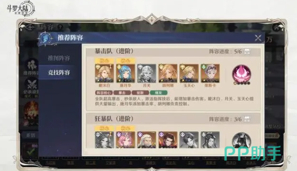 戴沐白+唐月华+月关+胡列娜+玉天心+奥斯卡:重点培养的角色分别是三个,主要就是戴沐白、千仞雪、月关,这就是整个游戏中可以展开暴击的队伍,在一瞬间就可以打败对手,在激活指挥技能之后就可以增加暴击伤害,爽快度直接飙升。